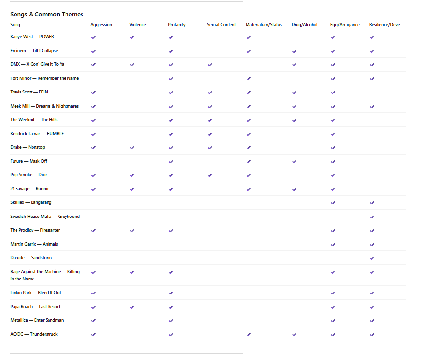 A thematic breakdown of the "Hype" playlist revealed: